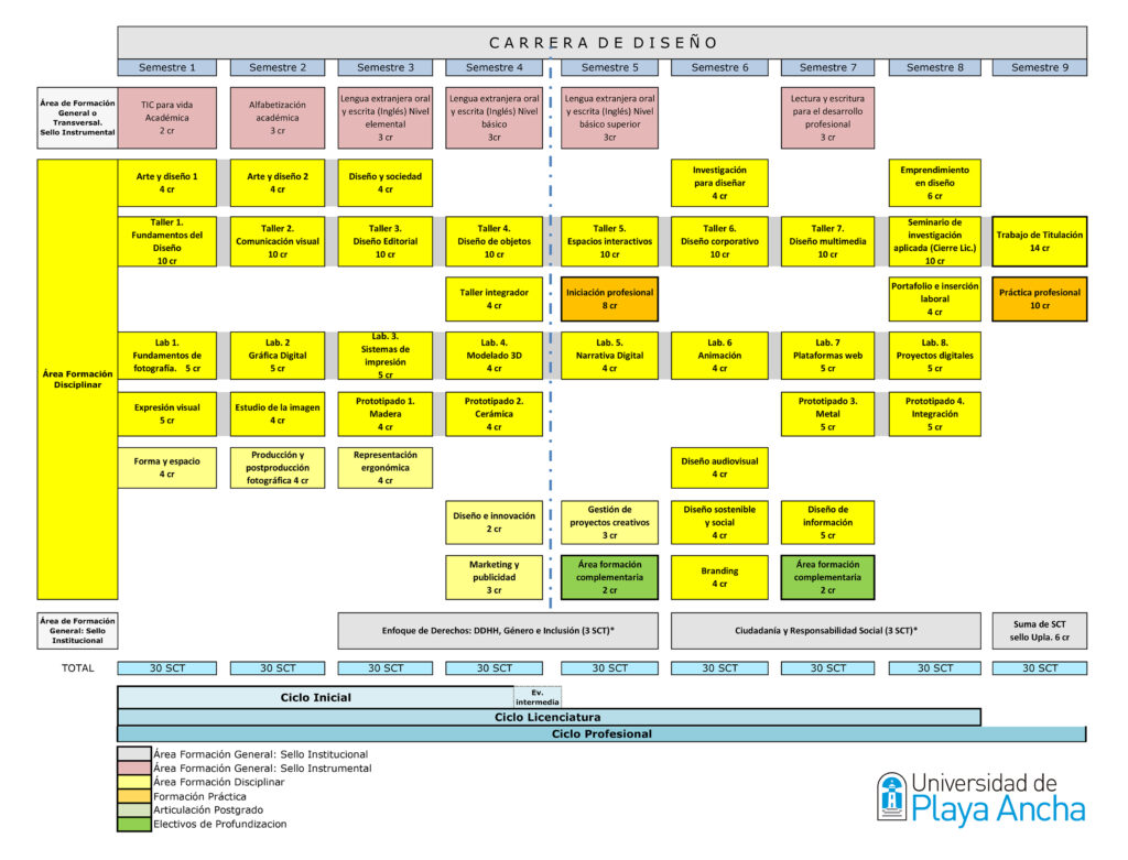 El plan curricular ha replanteando el perfil de egreso que incorpora nuevas asignaturas, talleres y laboratorios en atención a las necesidades que se presentan en el mundo laboral del diseño, impactado por las nuevas tecnologías.